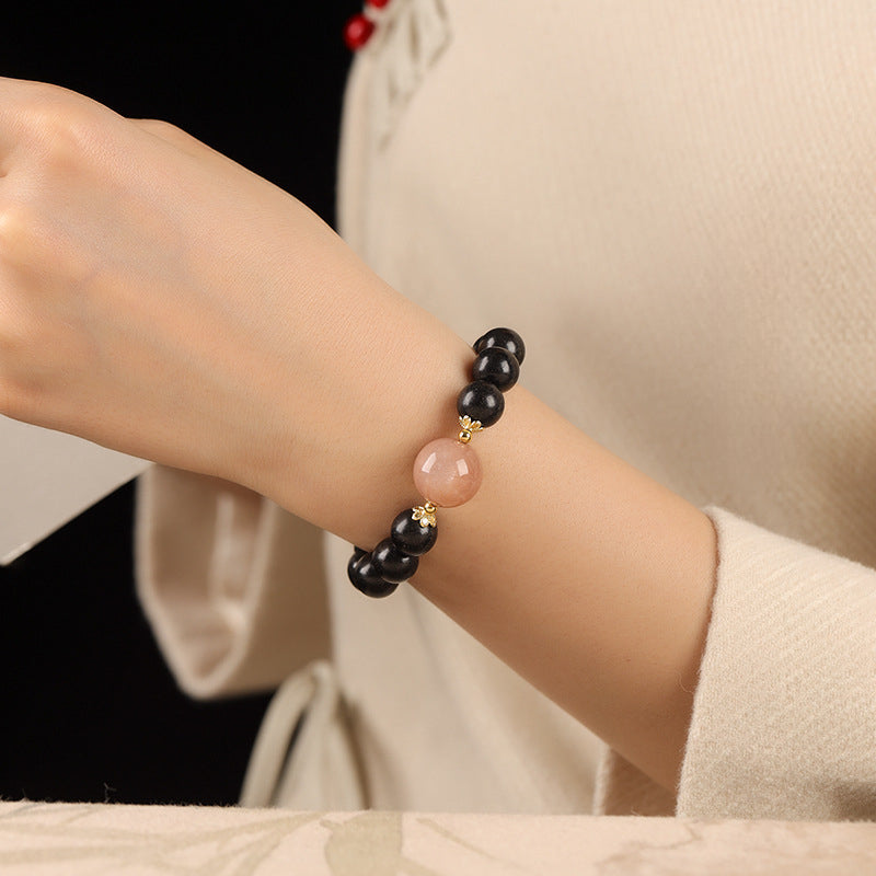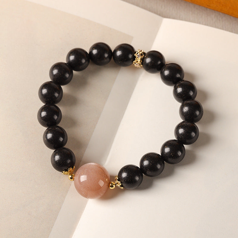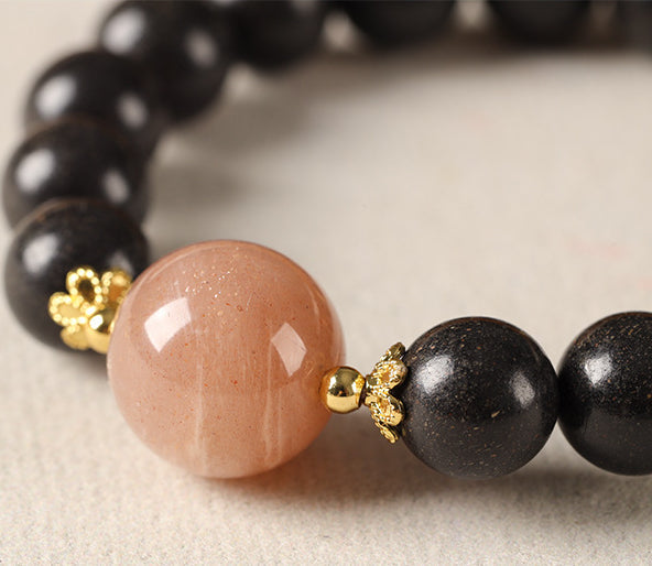This is a traditional Chinese medicine bracelet handmade from Da Si He Xiang Fang, mainly composed of natural fragrant materials such as agarwood, sandalwood, frankincense, ambergris, and musk. Traditional Chinese medicine that harmonizes body and mind, regulates qi and blood, and balances energy. In addition, a sunstone was paired with it to shine on the heart, creating a sparkling and dreamy mystical feeling. The fragrance of Da Si He Xiang beads is elegant, with medicinal properties traveling through the body along with the scent. It's a great incense for both gifting and personal use.