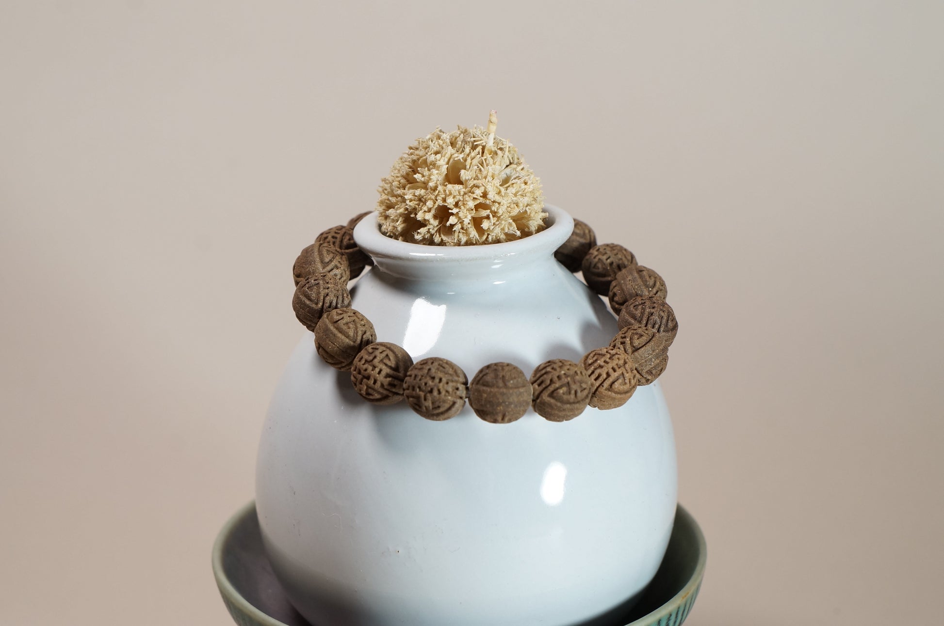 Gently roll the beads between your fingers as you breathe. The soft rhythm and natural aroma help you settle, focus, and stay present.